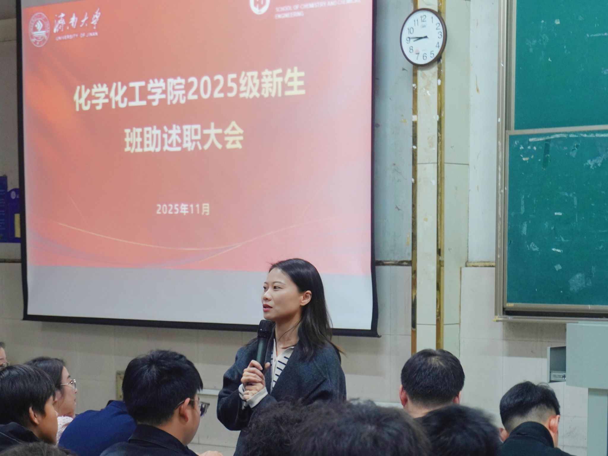11月11日,为总结新生班助工作成效,搭建经验交流平台,进一步夯实学生工作基础,化学化工学院2025级新生班助述职大会在星硕举行。学院党委副书记、副院长白雪飞、全体辅导员老师、新生班助负责人、全体新生班助及2025级全体新生参加。