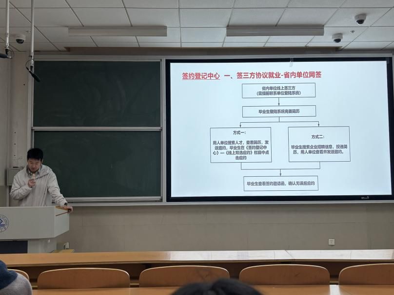 学院研究生辅导员李文超以最新就业数据研判2026届毕业生的就业形势,剖析“慢就业”“缓就业”心态成因,倡导“先站位、再择位、后优位”的务实就业观,鼓励毕业生把握秋招、春招机遇。