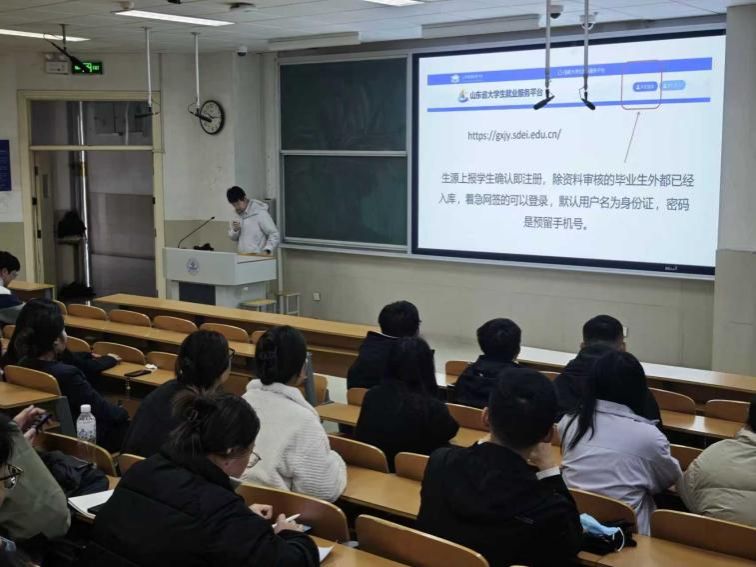 政策解读环节,李文超聚焦国家及山东省重点政策,介绍“三支一扶”“西部计划”等基层项目,说明自主创业补贴、税收减免、就业见习补贴的申领条件,同时梳理境内升学、自由职业等不同路径的政策适配要点,确保毕业生懂政策、享红利。