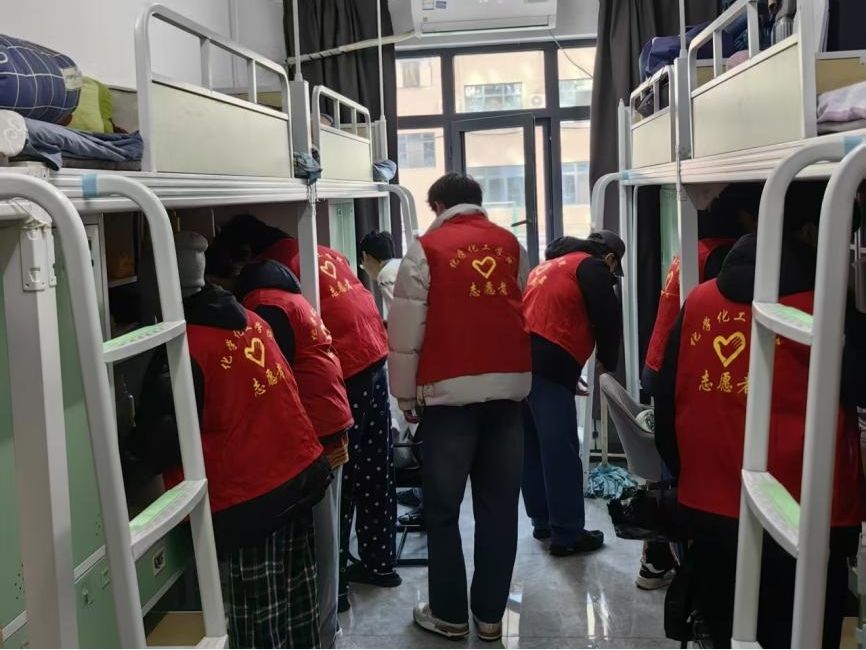 在卫生整治环节,学院严格对照《化学化工学院学生公寓“尚美”宿舍内务管理标准》,组建“辅导员+学生干部+志愿者”三级检查队伍,分批次、分楼栋对全院学生宿舍进行拉网式排查。走访过程中,辅导员老师们逐间宿舍查看地面清洁度、物品摆放规范度、门窗通风情况及床铺内务整理效果,对卫生工具杂乱堆放、暖壶排列无序、桌面杂物堆积等问题现场指出并指导整改。