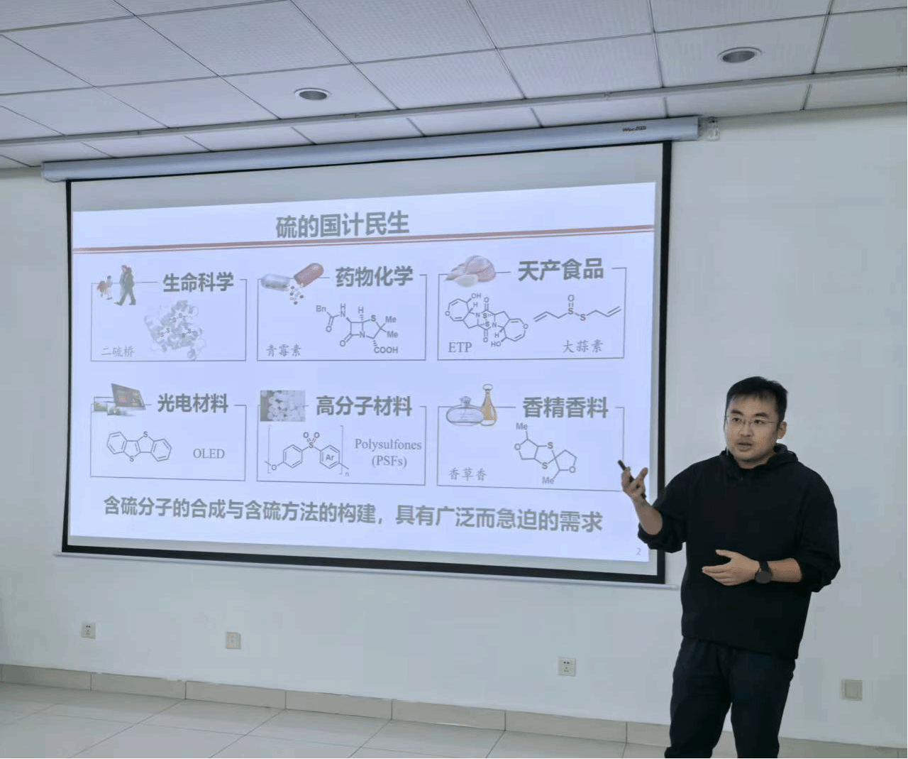 姜雪峰教授以“绿色有机硫化学”为题,围绕“无机硫向有机硫转化”这一核心思路,系统介绍了其课题组提出的“3S”绿色硫化学理念--无臭、稳定、可持续(Smelless, Stable, Sustainable),重点讲述了绿色硫化试剂的开发策略及其在硫化修饰与功能分子合成中的应用。近年来,姜雪峰教授课题组研发了系列单硫与多硫“面具”型含硫试剂,有效解决了传统有机硫化合物气味强烈的难题;将硫化学拓展至单糖、糖苷等生命基础物质的修饰中,攻克了硫苷合成中化学选择性的关键问题,实现了硫肽的高效构建,设计合成了多种含硫多肽药物、拟肽结构及肽链装订硫试剂,为精准化学生物学工具开发提供了新路径。