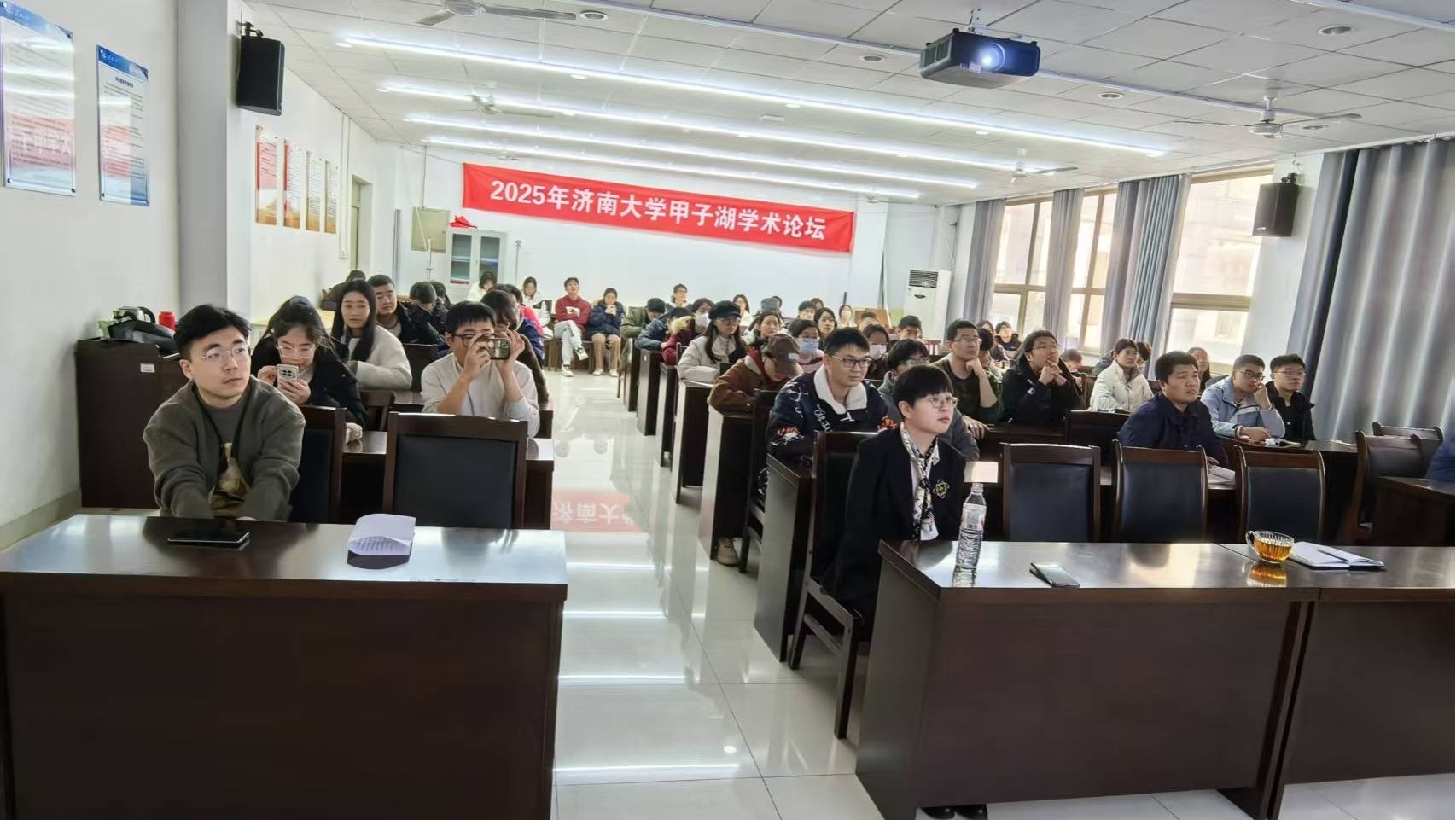 12月6日,河北师范大学于海涛教授、祁彦宇副教授来我校参加2025年济南大学甲子湖学术论坛并开展学术交流。学院相关专业教师、研究生等50余人出席报告会,报告会由学院副院长李村成主持