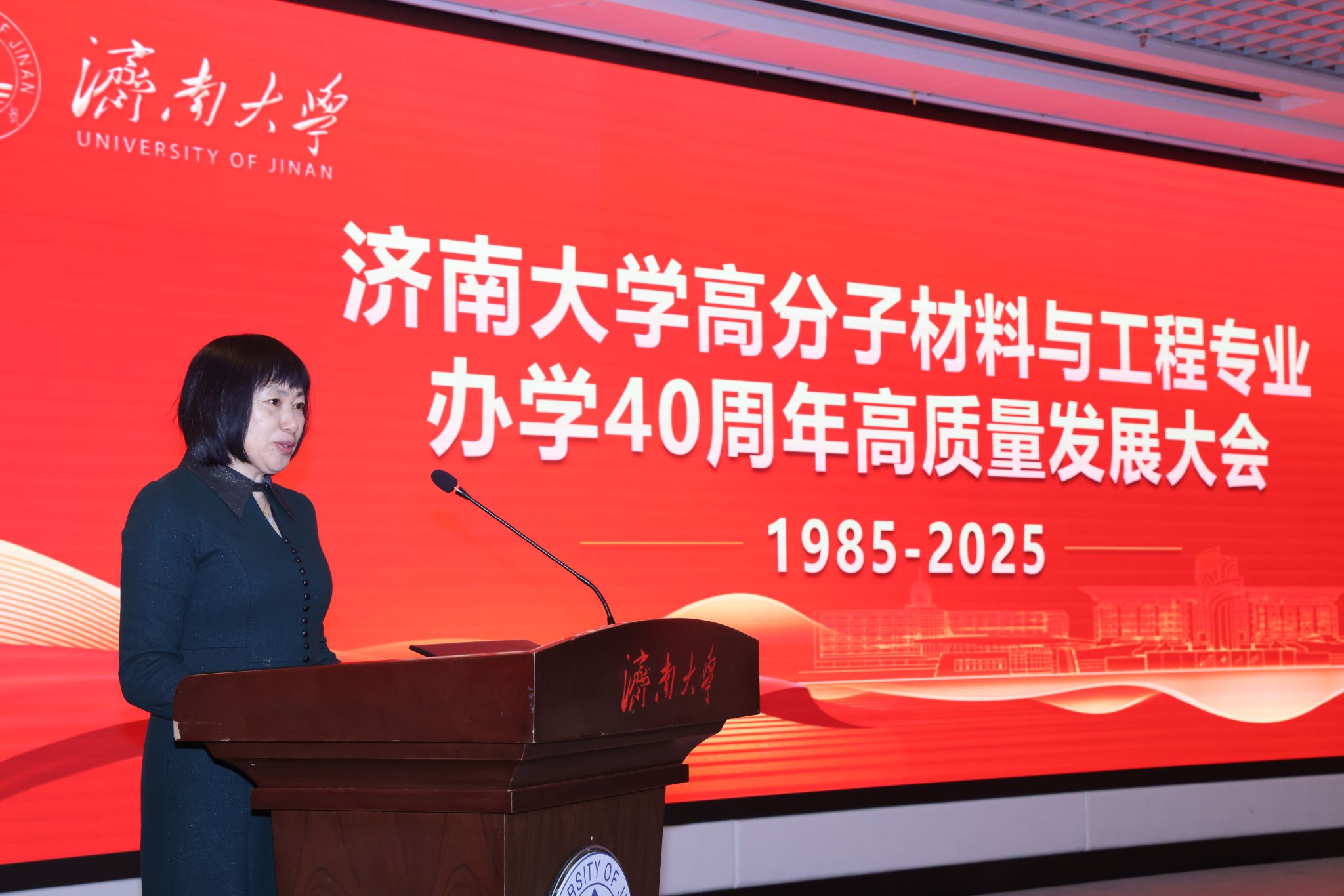 1月11日,济南大学高分子材料与工程专业办学40周年高质量发展大会在第一学术报告厅举行。中国科学院院士、东华大学教授朱美芳,中国科学院院士、浙江大学教授申有青,教育部高等学校材料类专业教学指导委员会秘书长、哈尔滨工业大学教授耿林,山东大学材料科学与工程学院院长周传健,济南大学党委书记刘春华,副校长徐征和,党委常委、副校长滕晋等出席大会,中国兵器工业集团、中国航空工业集团、京博集团、圣泉集团、泰山体育产业集团等合作单位代表受邀参会,相关职能部门负责人,化学化工学院历任党委书记、院长以及校友、师生代表一同回顾了专业四十年砥砺奋进的办学历程。大会由化学化工学院院长陈国柱主持。